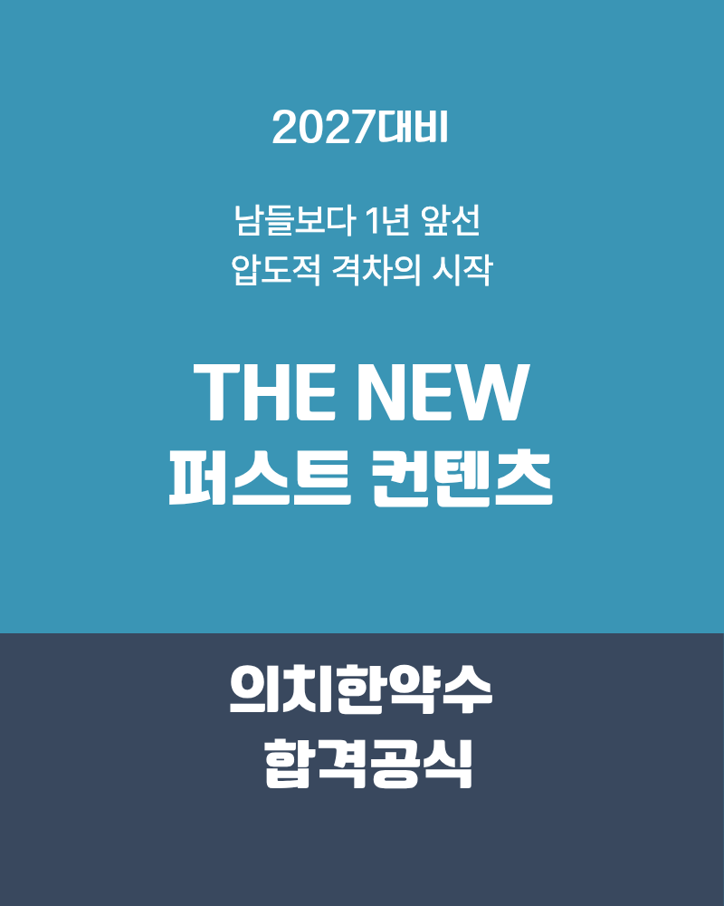국내 최고의 강사가 함께,의약대편입의 새로운 기준을 제시합니다. 선생님 의약대 M-DEET 서점 입시정보 합격수기 THE 퍼스트 콘텐츠 2/12(목) 마감 2/11(수) 마감 일반화학 편입수학 합격수기 THE 퍼스트 콘텐츠 2/12(목) 마감 2/11(수) 마감 일반화학 편입수학 합격수기 의약대 편입 강의의 기준, 최고의 강의력 선생님 생물학 서가영 역대 편입 5관왕, 약사 출신 의치한약수 편입 시험에 최적화! 정리의 여왕 생물학 서가영 일반화학 김준 단 한번도 꺾인적 없는 일반화학의 기준 JUN OR NOT 일반화학 김준 일반화학 이훈 화학, 속도와 정확! 일반화학 Chemispeed 일반화학 이훈 유기화학 최진규 어느 강의를 보더라도 결국 어차피 유기화학은 어유최 유기화학 최진규 생물학 이준 최고의 스펙과 검증된 실력 생물학 만점 JUNOLOGY 생물학 이준 수학 이지혜 의치한약수/이공계 '지혜'로운 편입 수학의 시작 Wisdom Math 수학 이지혜 합격을 만드는 차이. 남들과 다른 실력을 위한 필연적인 강의 합격을 더 완벽하게 만들어줄 교재 줌달의 일반화학[10판] [교재] 김준-일반화학 CHEMISTORY [교재] 최진규-유기화학 필수이론 ⅠⅡ [교재] 서가영-생물학 핵심생물학Ⅰ [교재] 서가영-생물학 핵심생물학Ⅱ [교재] 서가영-생물학 핵심생물학Ⅲ [교재] 서가영-생물학 핵심생물학Ⅳ [교재] 서가영-생물학 알짜정리 [교재] 최진규-유기화학 1000제 [교재] 약학대학 면접-판매 마감 [교재] 최진규-유기화학 SUMMARY [교재] 캠벨 생명과학 12판 퍼스트 회원이라면 최고의 강의가 무료 편입 생물 끝내기 편입 화학 합격의 확신 유기가 쉬워지는 마법 강의 지혜로운 기초수학 단국대 완벽복원 기출보기 가영샘이 알려주는 단국대 기출 편입 생물 합격 공식! 중앙대 편입생물 기출 해설 편입 일반화학 김준 최신 기출문제풀이 유기화학 학교별 실전기출&특강 단국대 의치약 편입 생물 기출문제 특강 퍼스트 합격의 모든 것 2025 학년도 충남대 합격수기 수강생 표OO님의 리얼 후기 2025 학년도 전북대 합격수기 수강생 이OO님의 리얼 후기 2025 학년도 원광대 합격수기 수강생 김OO님의 리얼 후기 2025 학년도 원광대 합격수기 수강생 임OO님의 리얼 후기 2024 학년도 원광대 합격수기 수강생 나OO님의 리얼 후기 2024 학년도 제주대 합격수기 수강생 유OO님의 리얼 후기 퍼스트 장학혜택. 다양한 혜택 장학혜택 합격&면접 후기 장학금 조건 없이 합격만 해도 장학금 지급 퍼스트 멘토 합격생과의 노하우 그대로 약대/의대 합격 멘토 장학혜택 퍼스트 합격수기 퍼스트 수험생의 생생한 후기 고객센터 (10:00 ~ 18:00) 02-2663-0907 점심시간 12:00 ~ 13:00(토/일 법정 공휴일 휴무) 장바구니 주문/배송 1:1문의 내 강의실 공지사항 [설 연휴] 교재 배송 안내 건[이벤트] 26대비 의치한약수/MD/연고대 합격 및 면접 후기 이벤트[홈페이지 점검] 홈페이지 업데이트 및 서버 점검 안내_1/28(수) 오전 10시~오후 4시[2027대비] 퍼스트 T-PASS 장학혜택_1/28(수) 마지막 수강료 지원 종료