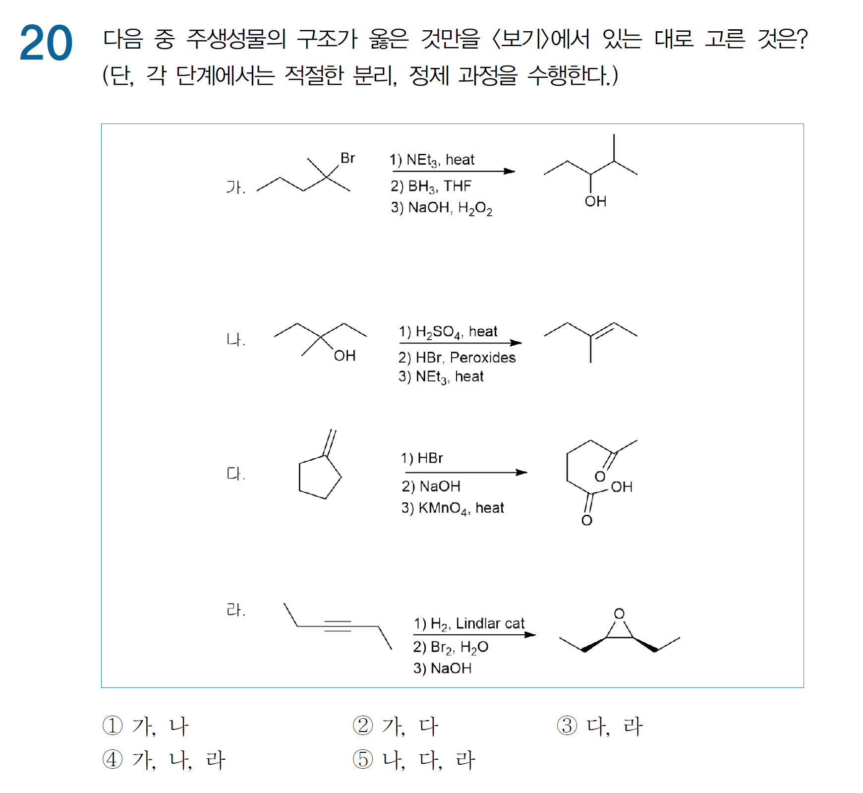 가, 나, 다, 라 선지 모두 올바른 작용기 변환이 되었다고 판단했었는데요~