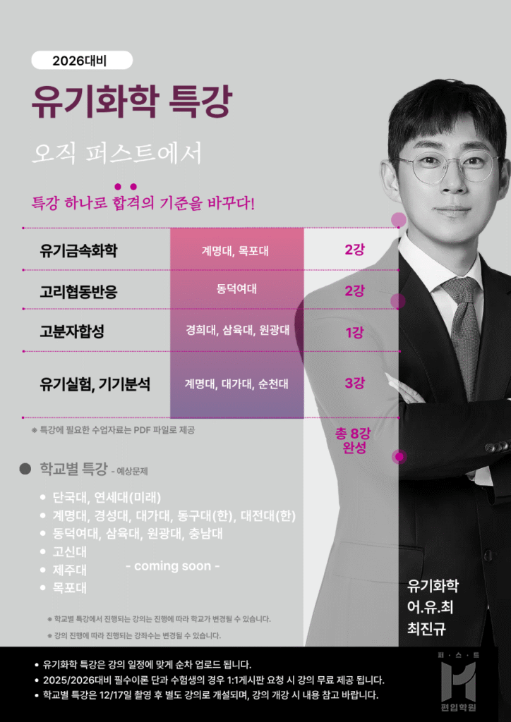 – 2026대비 편입 유기화학 특강