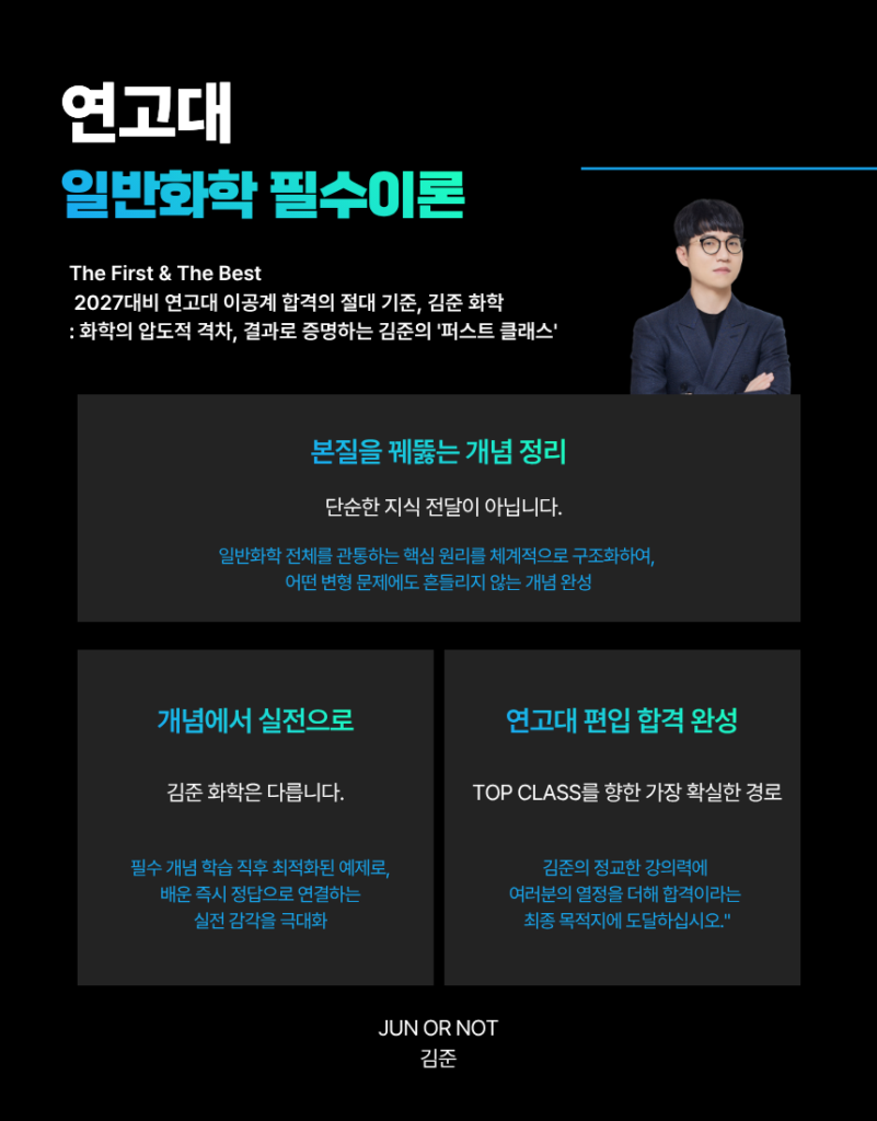 – The First & The Best : 2027대비 연고대 이공계 합격의 절대 기준, 김준 화학