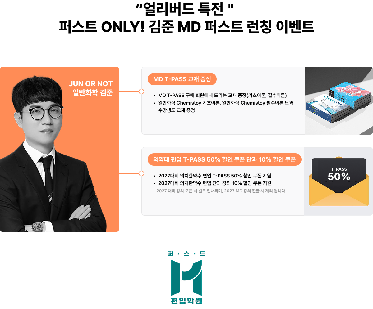 퍼스트 편입학원 X M사 화학 김준 MD, 여러분의 성공이 퍼스트에서 시작됩니다.
